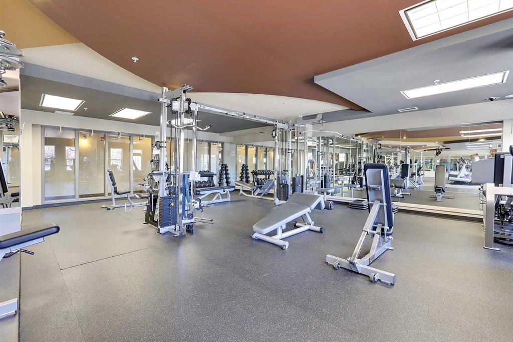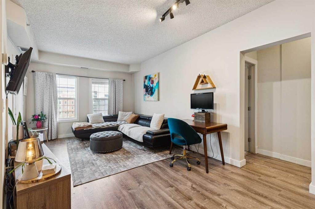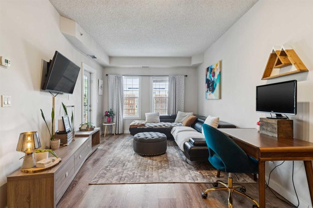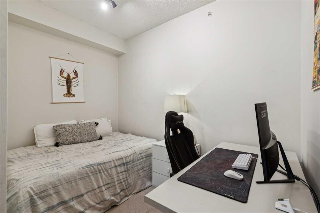 Quiet fourth-floor courtyard unit with 9’ ceilings, central A/C, and a private balcony with natural gas BBQ overlooking landscaped green space, positioned away from traffic for added privacy. This 2 bedroom, 2 bath + den layout offers true work-from-home flexibility with a fully enclosed office space and a well-proportioned living and dining area. The kitchen features granite countertops, stainless steel appliances, and full-height cabinetry. Award-winning 2025 Condo of the Year building with a full fitness centre, social lounge, rentable guest suite, and ample visitor parking. Condo fees are comprehensive and include heat, electricity, air conditioning, water, and sewer through an energy-efficient geothermal system, providing predictable monthly costs and exceptional value. Pet friendly with board approval. Includes in-suite laundry, generous storage, and titled underground parking. Ideal for professionals, downsizers, or investors seeking low-maintenance living in a well-managed, amenity-rich building.